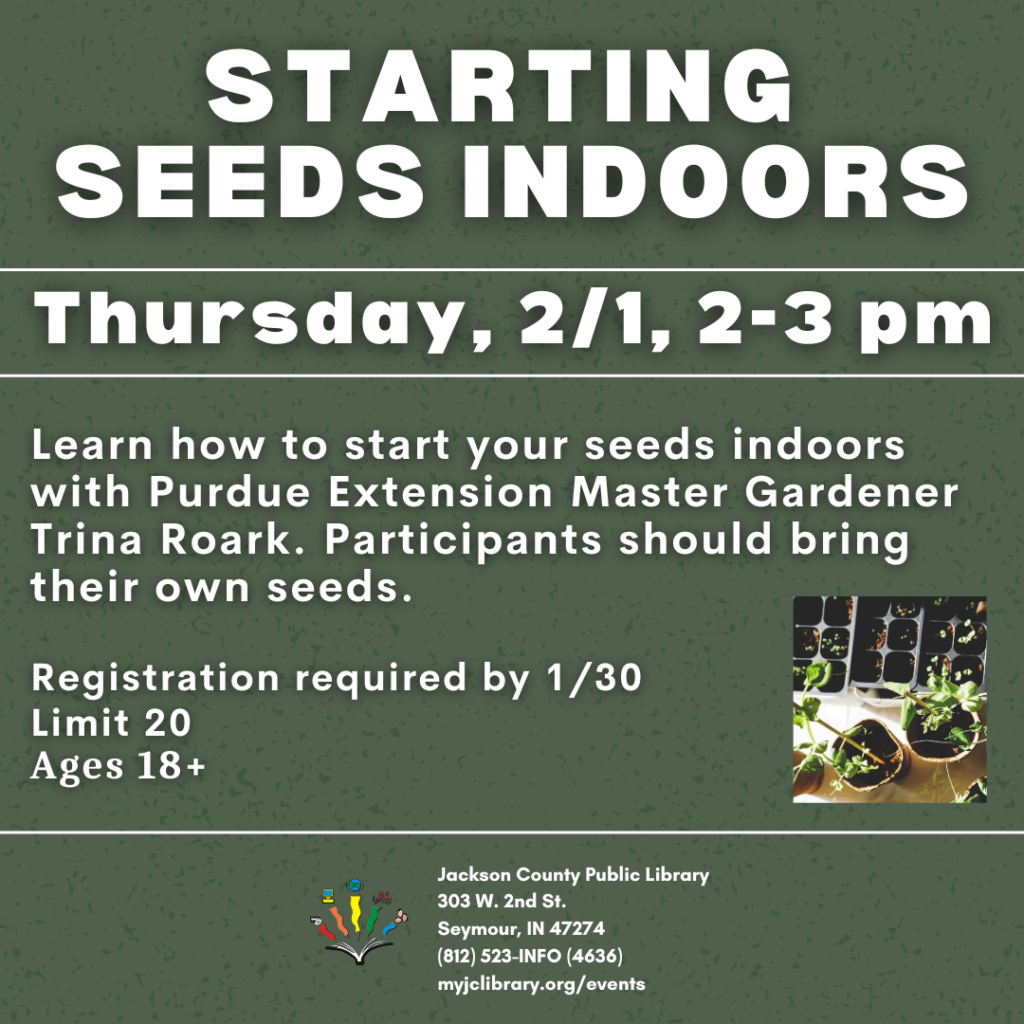 Learn how to start your seeds indoors with Purdue Extension Master Gardener Trina Roark. Participants should bring their own seeds.