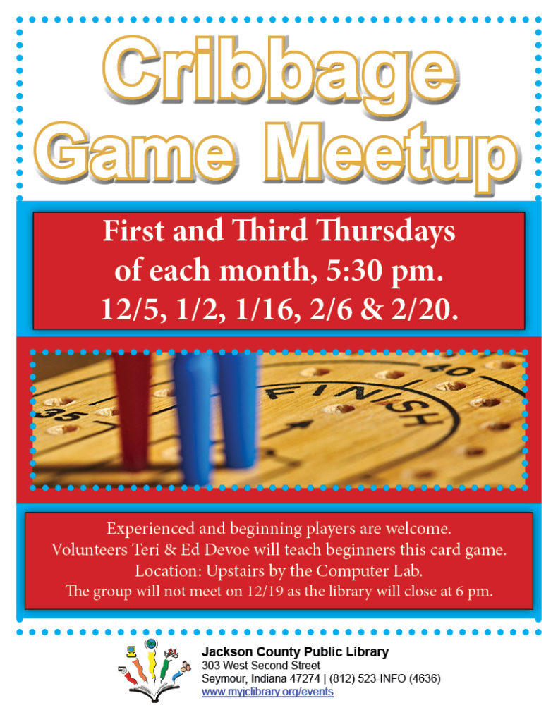 Cribbage Game Meetup Mark these dates on your new 2020 calendar if you enjoy cribbage or would like to learn how to play.