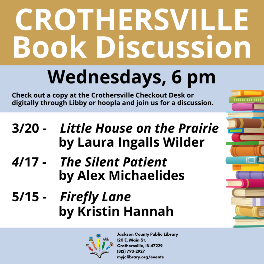 Crothersville Book Discussion Check out a copy at the Crothersville Checkout Desk or digitally through Libby or hoopla.