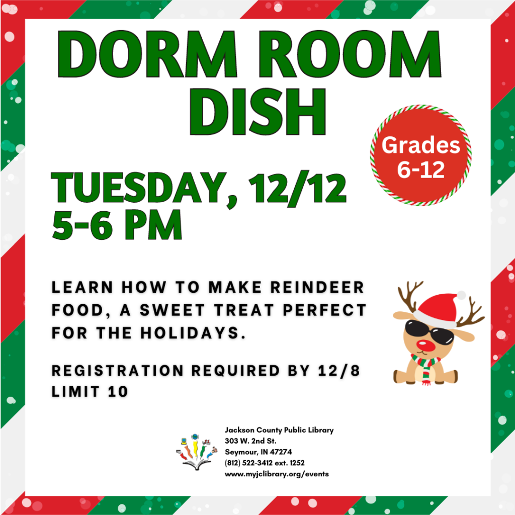 Dorm Room Dish Teens will learn a recipe for making reindeer food, a sweet treat perfect for the holidays.