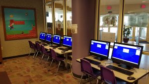 To fill the empty space where half of the computers used to be in the back of the room, a game table has been set up.