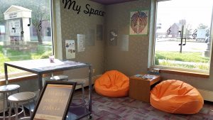 We now have the addition of bright, orange bean bags for the tweens to relax with a book or an iPad.