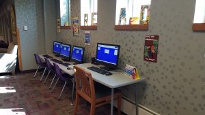 Kids ages 10-13 use the computers next to the Kidz Korner entrance.