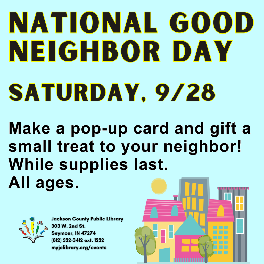 National Good Neighbor Day National Good Neighbor Day at the Jackson County Public Library – Seymour! No registration is required. While supplies last.