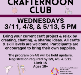 The Friends of the Jackson County Public Library will hold their bi-monthly sale from 3 to 5:30 pm on Friday, March 6, and 10 am to 1 pm on Saturday, March 7, in the Seymour Library meeting room. A special Friends-members-only sale is 2 to 3 pm on Friday, March 6.