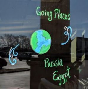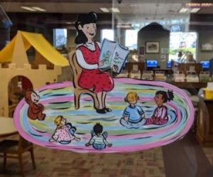 Spring Window Paintings Enjoy the beautiful spring windows, painted by Sharon Schurman and sponsored by the Friends of the Library!