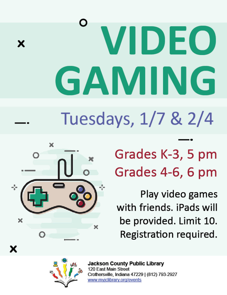 Video Games for Kids in Crothersville Please register here for K-3 grade program and here for grades 4-6 to make sure of your spot.
